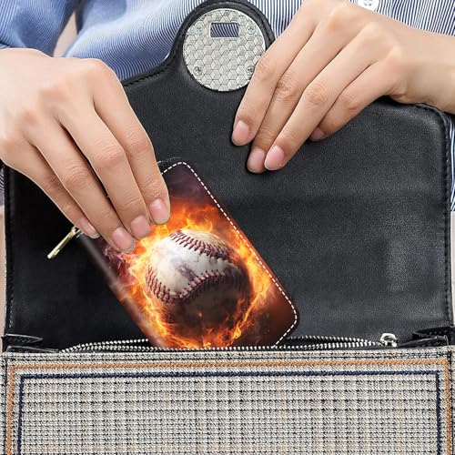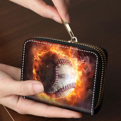 Credit Card Holder Wallets for Women, Burning Baseball Design RFID Blocking Small Leather Card Case Wallet Zipper Accordion Wallets 5