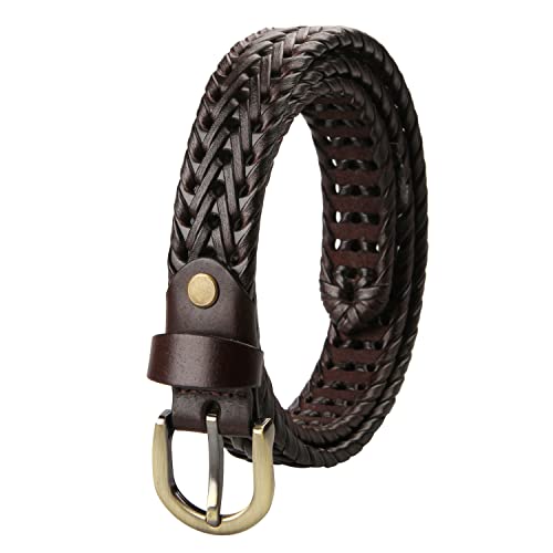 Women Braided Woven Genuine Leather Narrow Belt 25mm Wide 1
