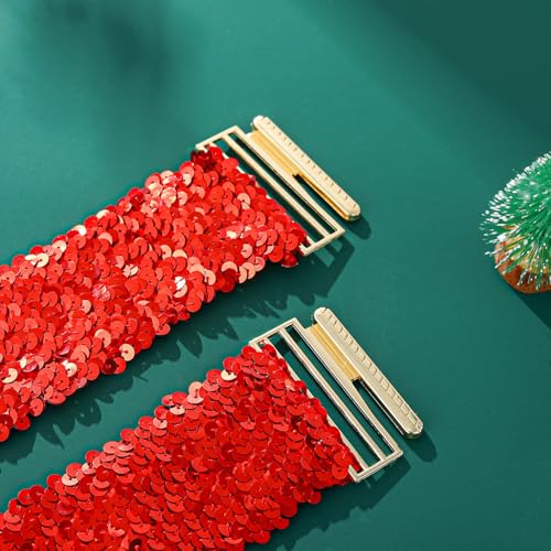 Wide Elastic Waist Belts Sequin Stretchy Belts Red Green Sparkly Waistband for Women 4