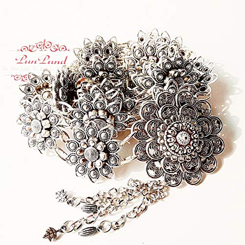 More information about Silver Metal Thai Belt Lotus Flower Plate Thailand Costume Wedding Dance Women For Dress Skirt Sarong Vintage Style Traditional Length 40 Inches Adjustable Size 1 Piece