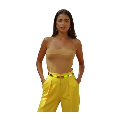 • Style: High waist / Hip Day-to-Night Look: Pair this neon yellow belt with a black dress or skirt for a night out. The bright color will contrast beautifully with darker tones.
