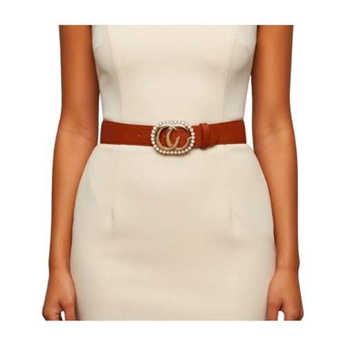 • Chic & Glamorous CC-Style Buckle Stand out with a fashion-forward brown belt featuring a gold-tone interlocking CC buckle with dazzling rhinestone accents — a bold statement piece inspired by luxury fashion.