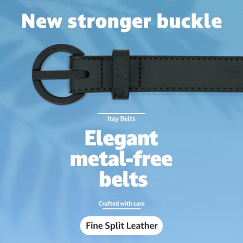 HOT ! ITAY Women Metal Free Leather Belt - 25mm Nickel Free Belt for Women, TSA-Friendly No Metal Belts with Sturdy Plastic Buckle