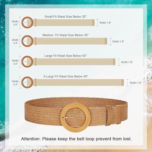 • Freely Adjustment Size&Color: this 3 pack women elastic straw belt have 4 sizes for choice in a round style buckle. The width of this woven belt strap is 1.9 inch. The belt length is 90cm-120cm/35.4”-47.24”(include the buckle) to fit waist size below 30”, 35”, 40”, 45”. The elastic band makes our wearing very comfortable in black, beige, stripe colors. Warm Tip: pls check the size chart before purchase and choose a suitable size for you.