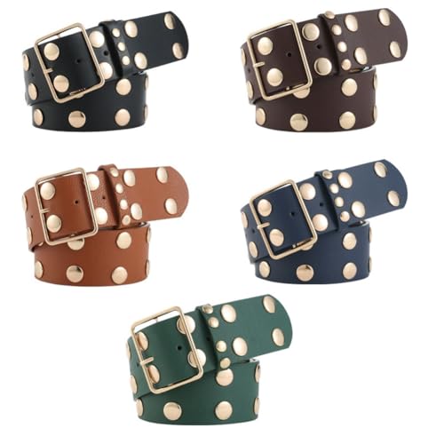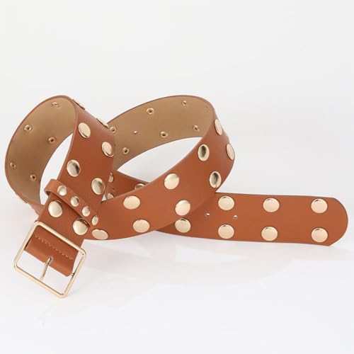 • Punk Simple Design:This punk circle studded belt consists of PU leather belt with simple gold buckles and double rows of circle-shaped metal inlays, which simple punk design style.