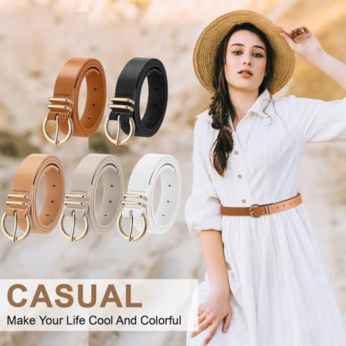 5 Pcs Women Leather Belts for Jeans Pants Dresses Fashion Womens Ladies Belt with Gold Buckle, Small to Plus Size 3