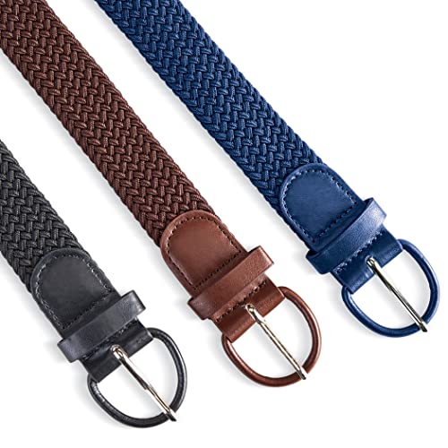 HOT ! Collections Etc Stylish Braided Stretch Belts - Set of 3 | Black, Brown, Navy Blue | Polyester, Elastane