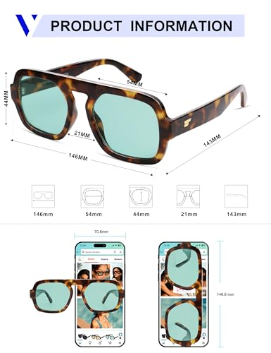 VANLINKER Oversized Retro Square Aviator Sunglasses for Women Men 70s Vintage Style Trendy Big Flat Top Sun Glasses VL9826 5