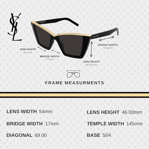 • Perfect Fit: Experience the Perfect Fit with these Saint Laurent sunglasses. Featuring lens dimensions of 54mm width, 46mm height, 17mm bridge, and 145mm temple length, these shades offer both style and comfort. Elevate your style with the timeless appeal of these sunglasses, tailored for the modern men and women.