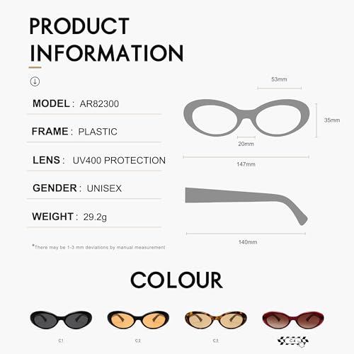 More information about Retro Oval Sunglasses for Women Men 90s Vintage Cat Eye Sunnies AR82300