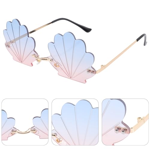 Kisangel Frameless Seashell Sunglasses Shell Shaped Eyeglasses Party Fun Sunglasses Rimless Eyeglasses for Girls Women,Blue and Pink 6