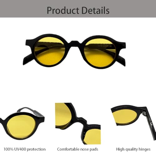 • CLASSIC DESIGN: Round retro-style sunglasses featuring a timeless circular frame design in sleek black with yellow-tinted lenses for a vintage aesthetic