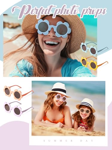 Kanayu 4 Pairs 5.71 In Summer Adult Flower Sunglasses Glasses Round UV Protection Colorful Eyewear for Women Men Beach Party 4