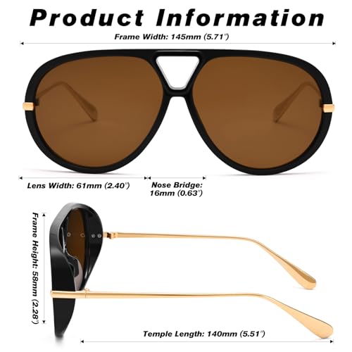 COASION Trendy Oversized Aviator Sunglasses for Women - Retro Large Round Shield Designer Sun Glasses Vintage Shades 6