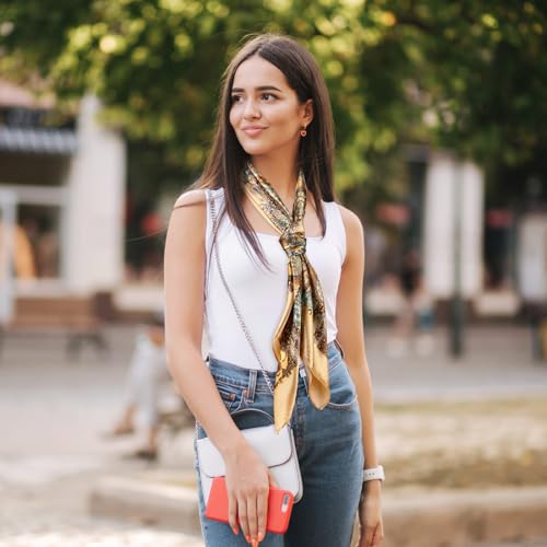 • Smooth Sensations and Skin Friendly: experience the smooth silk touch of the large square neck scarf; Made from silk like polyester, these satin hair scarfs for sleeping provide lightweight comfort and breathability during sleep; Their natural dyes remain steadfast, providing no color fade or shading, ensuring a soft and safe contact with your skin and hair
