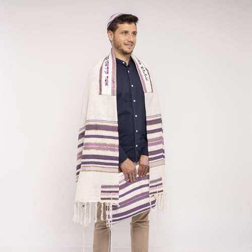 HOT ! Yair Emanuel Hand-Woven Tallit with Tallit Bag and Matching Kippah- Purple