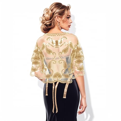 • Excellent Material: This champagne 1920s evening gown sequin shawl is made of premium polyester fabric with hand-sewn sequins and beading to ensure high quality and durability. Whether it is comfort or beauty, it is the perfect choice for you.