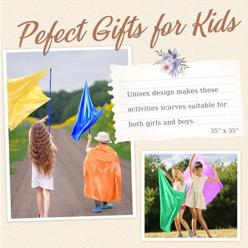• Wide Range of Usages: the large play scarves can be applied for dressing up, pretend play game, doll blankets, dancing and twirling, cloaks, preschool activities, Halloween costumes, stocking stuffers, picnics, traveling, juggling, and more