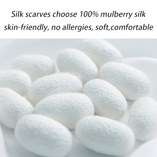 • ✅MATERIAL: Made from 100% pure, high-quality mulberry silk, this scarf is soft, smooth, and breathable. It's gentle on the skin and eco-friendly, with no pollution or peculiar smell. We guarantee that all items sold on this product page are crafted from 100% silk.