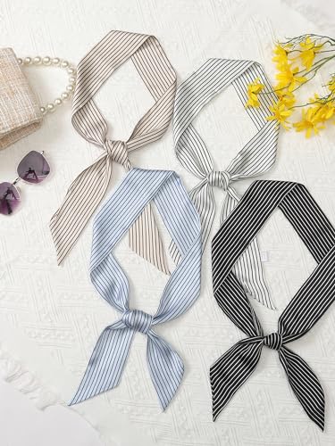 Women Striped Skinny Long Scarves, Simple Satin Silky Neck Scarf Neckerchief Ribbon Hair Band 4