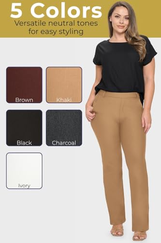 HOT ! ICONOFLASH Women’s Stretch Ponte Dress Pants - Straight Leg Pull-On Mid Rise Casual Trousers Work Pants Small-XXXL