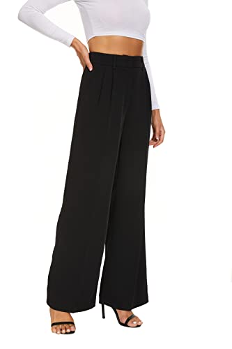 • FEATURE -- Back elastic waist, high-waisted wide leg style, pleated front, loose fit, breathable and soft fabric, zipper closure, two side pockets