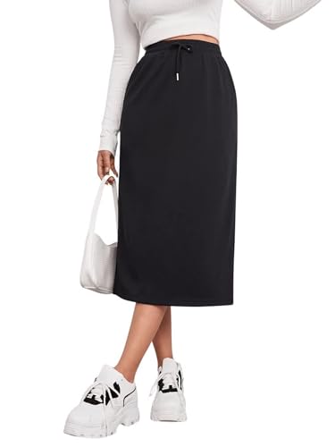 HOT ! SOFIA'S CHOICE Women's Midi Skirt Drawstring High Waist Sweat Skirts with Pockets