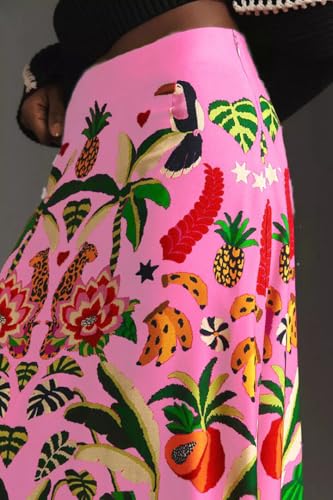 More information about THLAI Womens Skirt Midi Skirt Tropical Plant Print Pink Zipper A-Line Long Skirts Spring Summer Skirt Floral