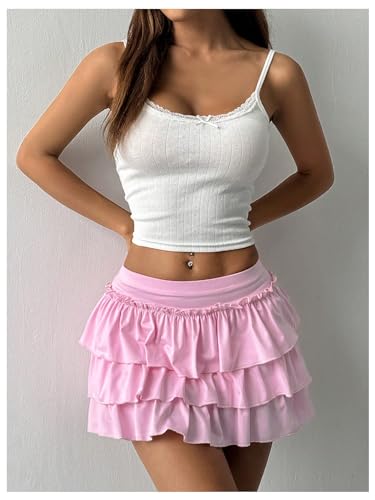 Women's Bow Back Mini Skirt Elastic Low Waist Layered Ruffle Hem Short Cake Skirts 6