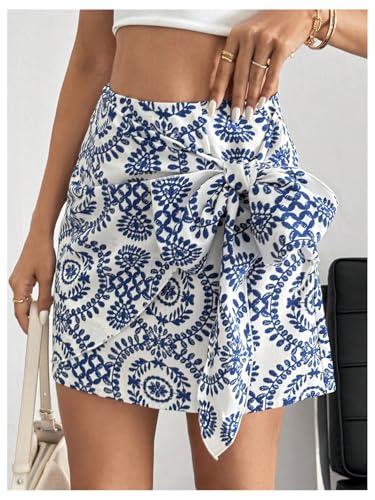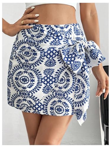 WDIRARA Women's Allover Print Knot Side High Waist Wrap Skirt Zipper Back Boho Mini Skirt 6