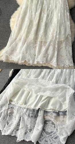 CHARTOU Women Embroidered Long Lace Maxi Skirt Sheer Tull Layered Skirt Crochet Mesh A Line Skirt Cotton Elastic Waist 7