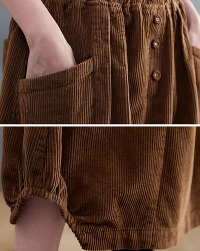 chouyatou Women's Elastic Waist Vintage Corduroy Skirt Button A-Line Swing Midi Long Skirt with Pockets 5