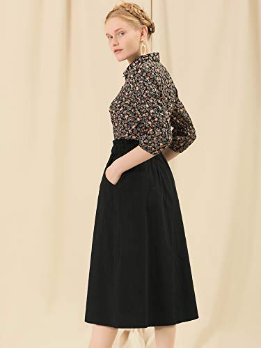 Allegra K Women's Cotton A-Line Skirt Elastic Waist Casual Peasant Midi Skirts with Pockets 6