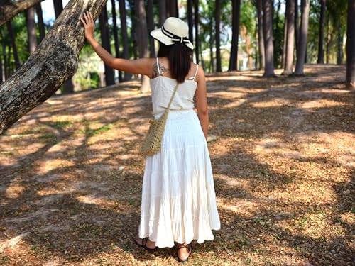 Sakoonee Boho Hippie Maxi Skirt Long Summer Cotton Dress for Women with Smocked Elastic Waist 5