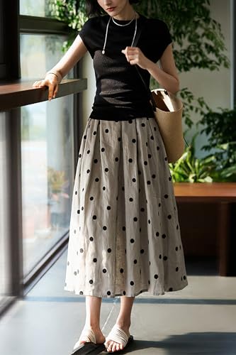 More information about Linen Polka Dots Skirt Women Casual A-Line Midi Skirts 2025 Comfy Flowy Swing Long Skirts with Pockets