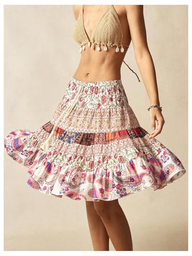 Women's Boho Paisley Short Skirt Tie Knot Flowy Summer Vacation A Line Skirt 1