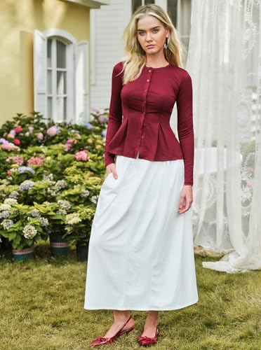 • Features - Elastic waist, curved gathering design, side pockets, flowy swing long skirts for women