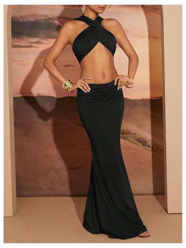 GORGLITTER Women's Flowy Bodycon Maxi Skirt Low Rise Party Pencil Long Fishtail Skirts Going Out Outfits 1