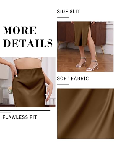2025 Womens Satin Silky Midi Skirt with Slit and Elastic High Waist Summer Fall 6