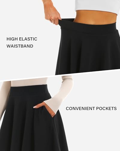 Stelle Women's 20" Knee Length Skirts with Pockets Casual Basic Midi Skirt Stretchy High Waisted Skater Flared Pleated 1