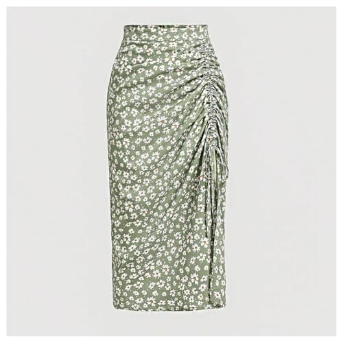 HOT ! Verdusa Women's Ditsy Floral Print Ruched Skirt Split Thigh Casual Long Skirts