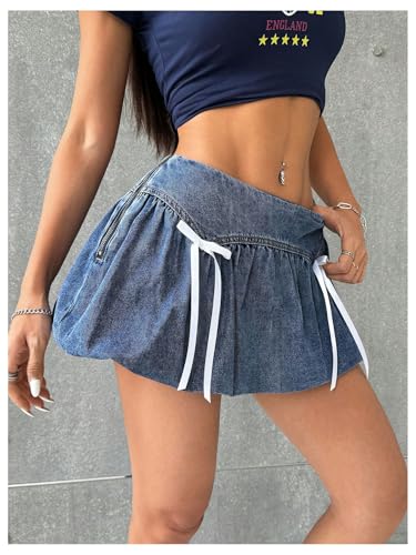 More information about Milumia Women's Denim Bowknot Decor Mini Skirts Ruched Hem Bubble Skirts