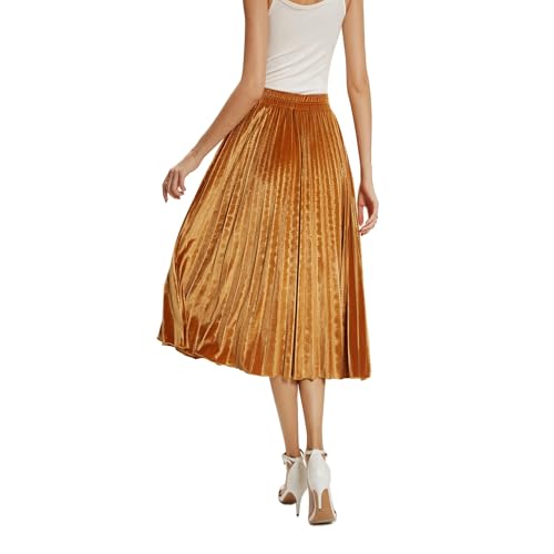 More information about TONCHENGSD Women's High Elastic Waist Velvet Midi Long Pleated Swing Ruffled Skirt