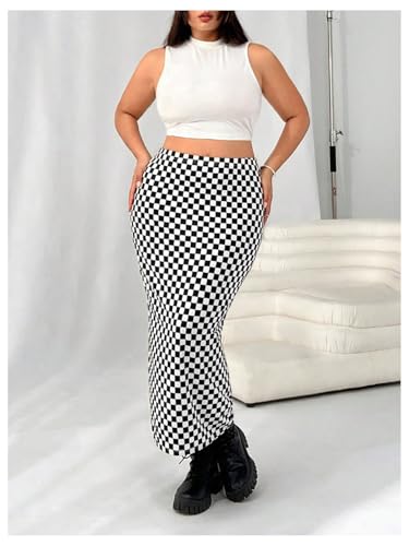 WDIRARA Women's Plus Size Checkered Maxi Skirt High Waisted Bodycon Pencil Skirts 4