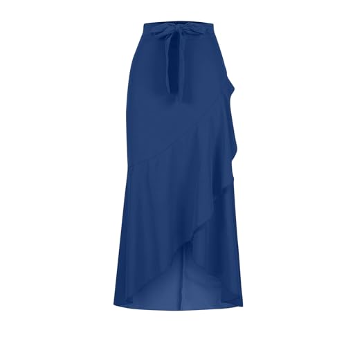More information about Womens Maxi High Waisted Skirt Dressy Elegant Belted Flowy A-Line Front Split Ruffle Hem Beach Party Long Skirts