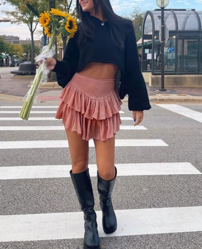 MiiVoo Women's High Waist Ruffle Flowy Mini Skirts Stretchy Waist Solid Lined Layered Pleated Casual Beach Short Skirt 4