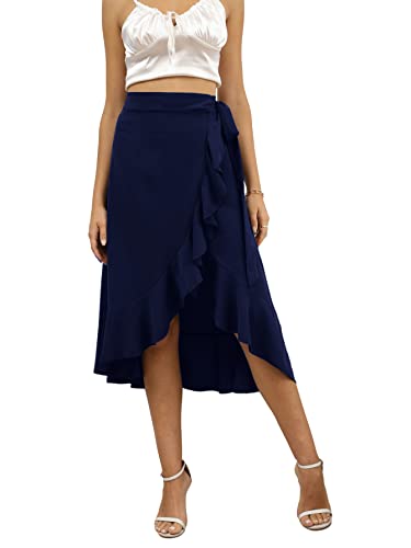 HOT ! LYANER Women's Boho Floral Print Wrap Front Self Tie Knots Ruffle Hem Split Midi Skirt