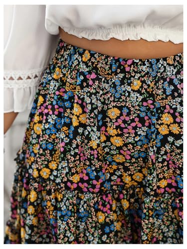 Women's Plus Size Floral Skirt Elastic High Waist A Line Flowy Ruffle Tiered Boho Summer Skirts 5