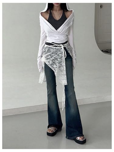 HOT ! GORGLITTER Women's Floral Lace Sheer Wrap Skirt Criss Cross Tie Front Asymmetrical Skirts