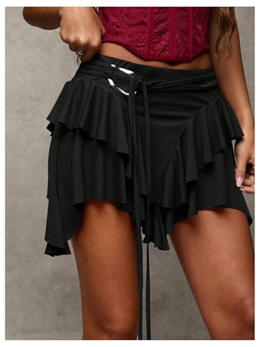More information about Milumia Women's Ruffle Mini Skirt Low Waist Asymmetrical Hem Flowy Going Out Skirts